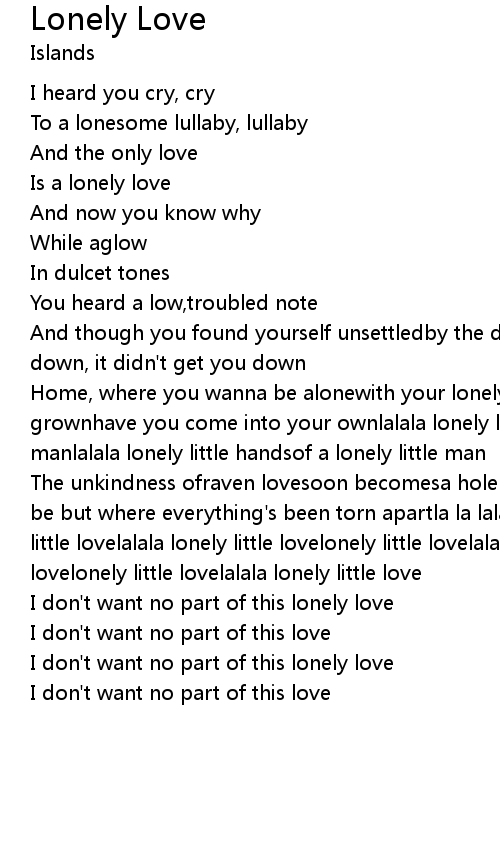 The unkindness ofraven lovesoon becomesa hole in your heartwhere feeling should be but where everything's been torn apartla la lala lala lonely lovelonely little lovelalala lonely little lovelonely little lovelalalalala lonely lovelonely little lovelalala lonely little love |