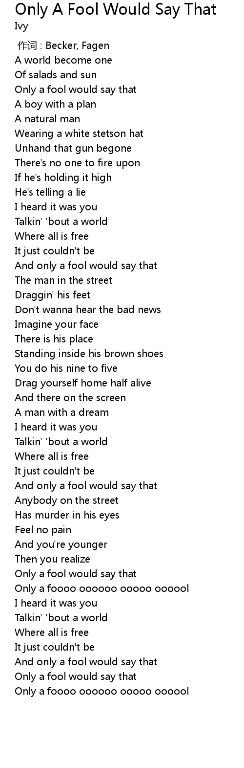 | [00:18.48] | Only a fool would say that |