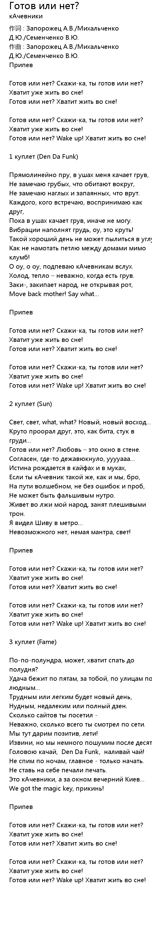 Готов или нет? Скажи-ка, ты готов или нет? |