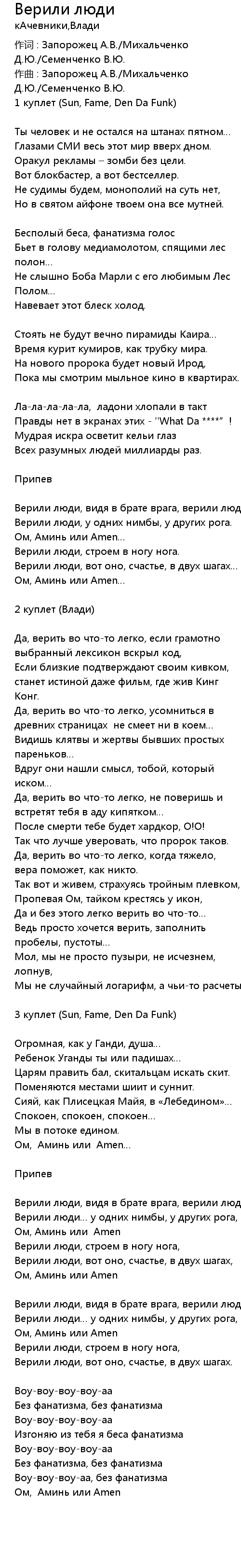 Верили люди, вот оно, счастье, в двух шагах, Ом, Аминь или Amen |