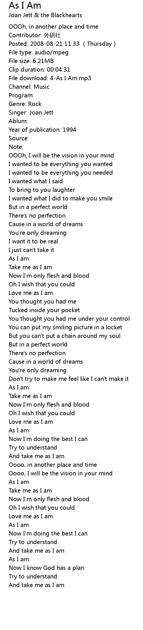 | [00:04.56] | File download: 4As I Am. mp3 |