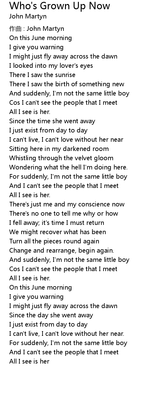 | Song | Who's Grown Up Now |