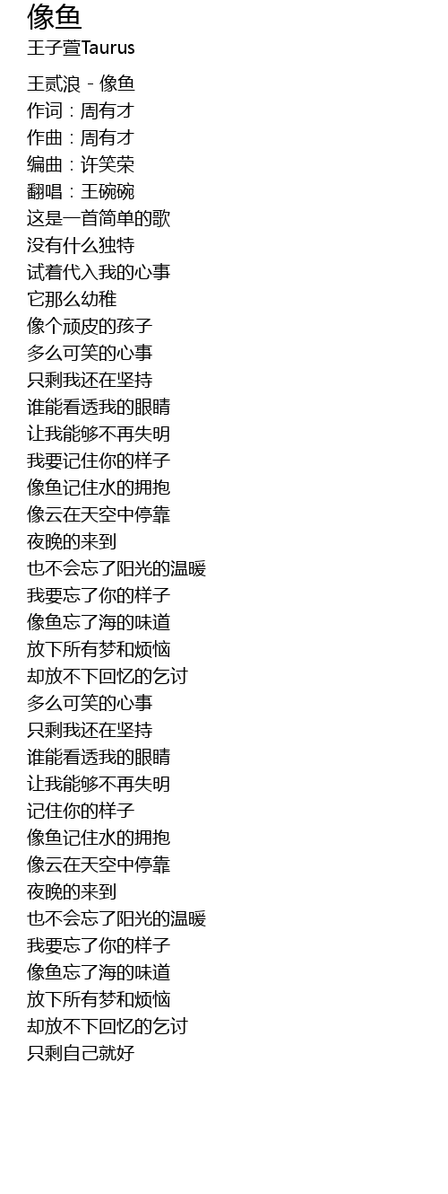 | [00:02.434] | 王贰浪 - 像鱼 |