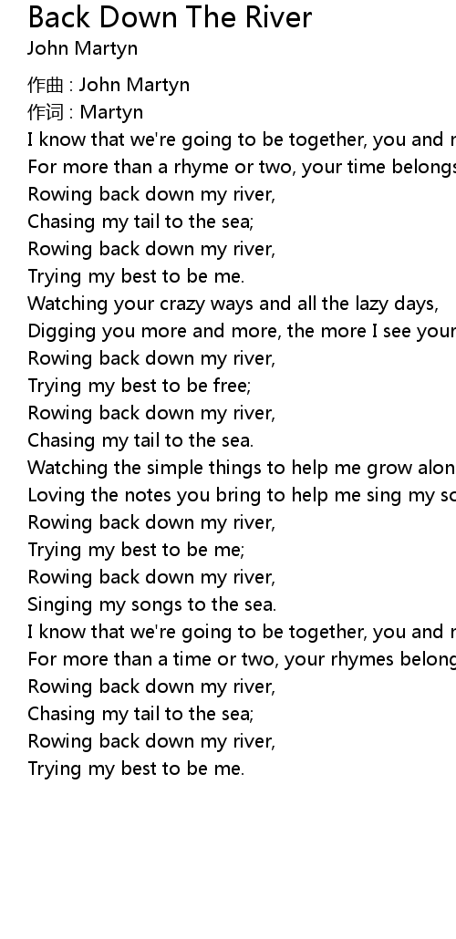 | Rowing back down my river, | |