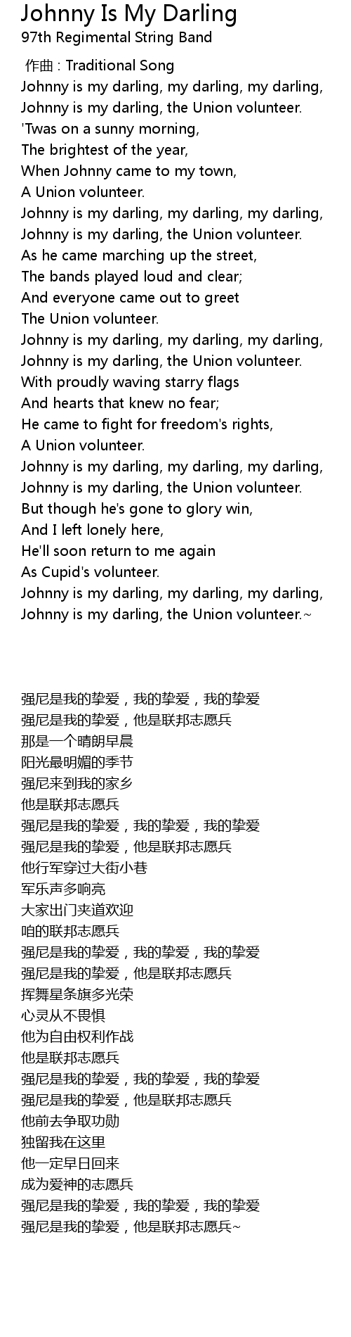 | [00:43.944] | Johnny is my darling, my darling, my darling, |