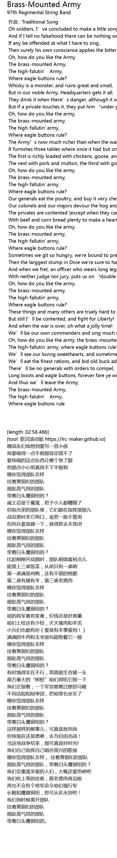 | [02:21.523] | Oh, how do you like the army, the brassmounted army, |