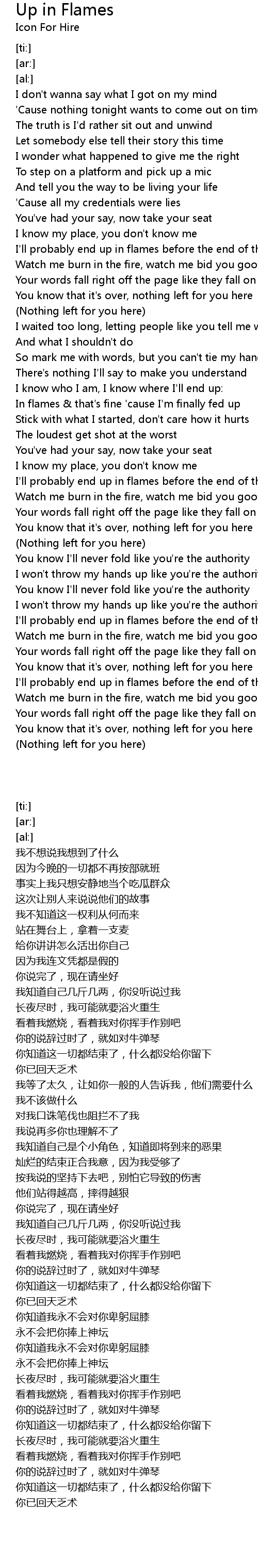 In flames & that's fine 'cause I'm finally fed up |