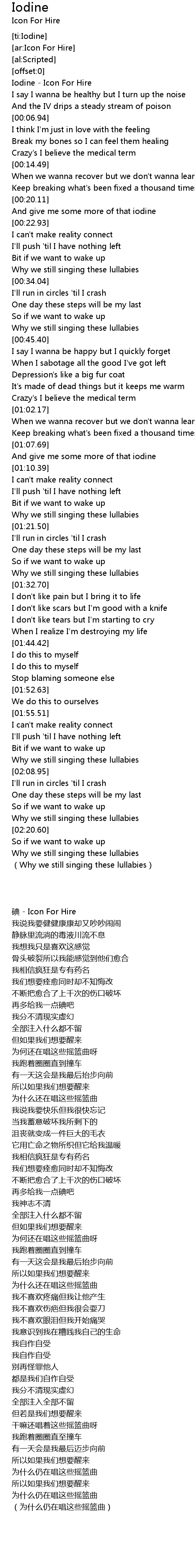 | [00:04.05] | And the IV drips a steady stream of poison |