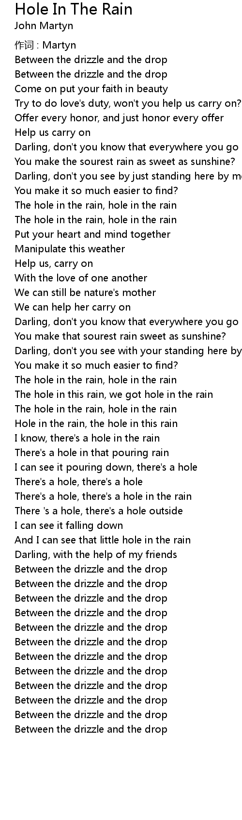 | There' s a hole, there' s a hole in the rain | |