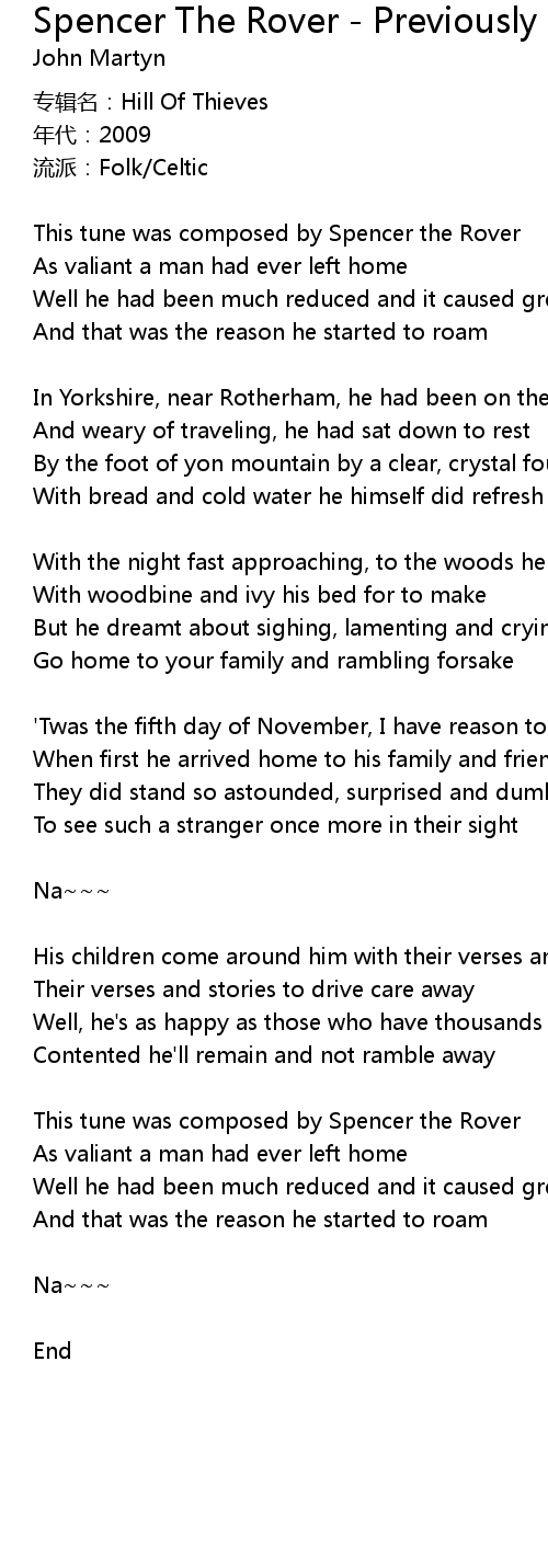 | Song | Spencer The Rover - Previously Unreleased Live Version |