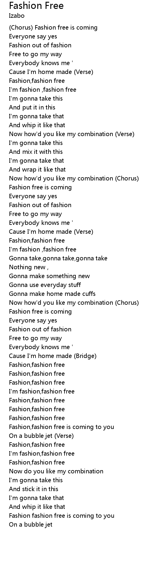 (Chorus) Fashion free is coming |