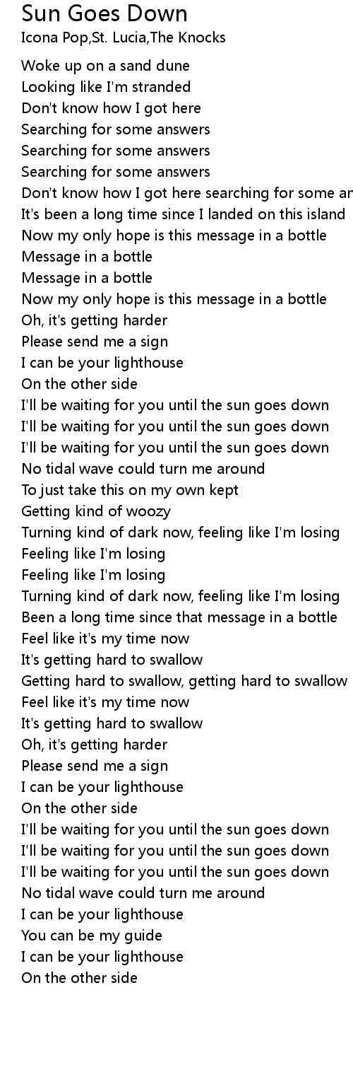 I'll be waiting for you until the sun goes down |