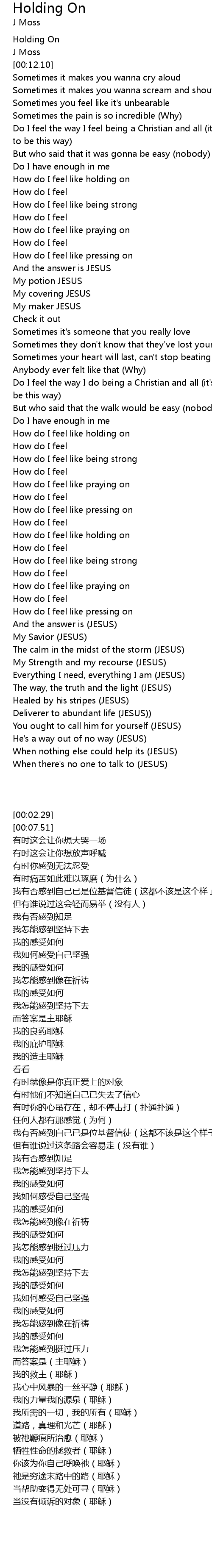 | [01:56.45] | Do I feel the way I do being a Christian and all (it's not suppose to be this way) |