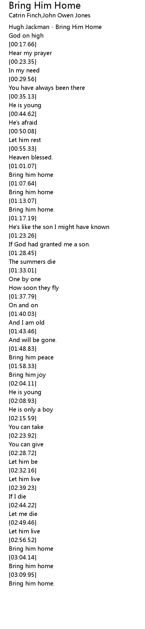 Hugh Jackman - Bring Him Home |