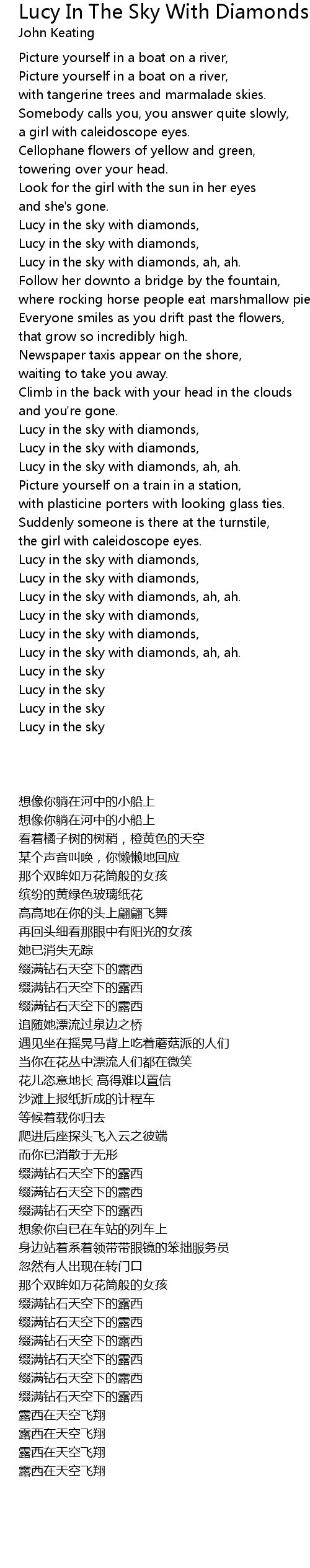 Lucy in the sky with diamonds, |