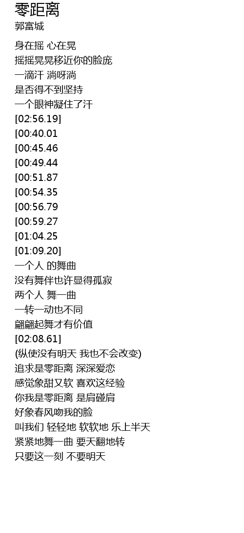 | [01:54.03][00:54.35] | 拥抱着零距离 无法控制 |