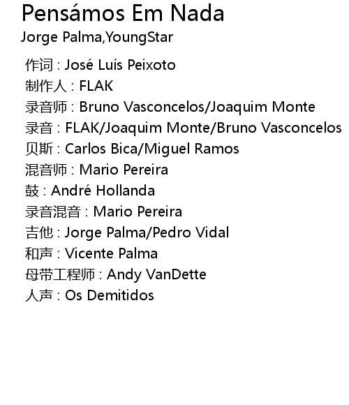 | [00:00.000] | 录音师 : Bruno Vasconcelos/Joaquim Monte |