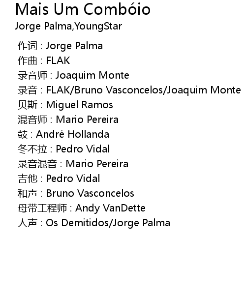 | [00:00.000] | lù yīn : FLAK Bruno Vasconcelos Joaquim Monte |