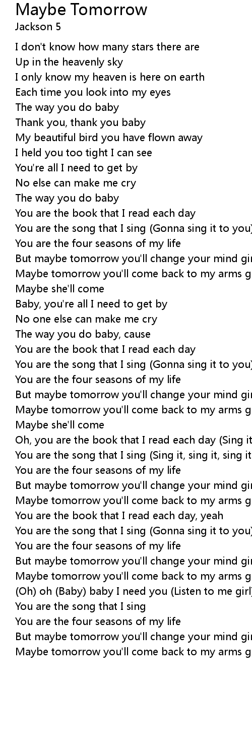Maybe tomorrow you'll come back to my arms girl |