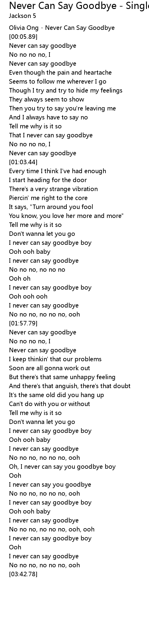 Never can say goodbye |