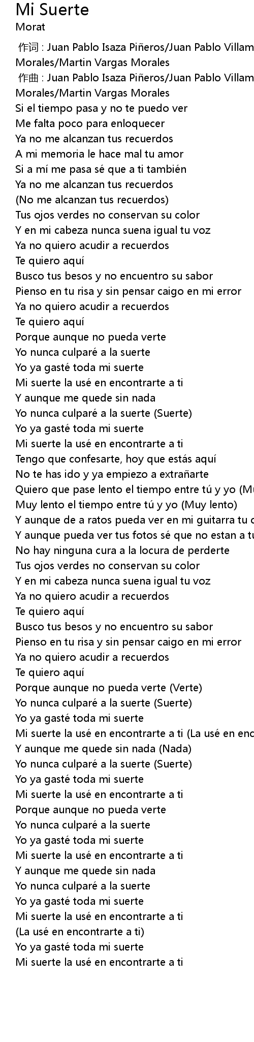 | [02:15.00] | Yo nunca culparé a la suerte (Suerte) |