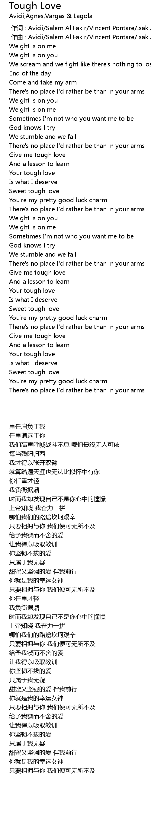 | [00:01.000] | zuo qu : Avicii Salem Al Fakir Vincent Pontare Isak Alverus |
