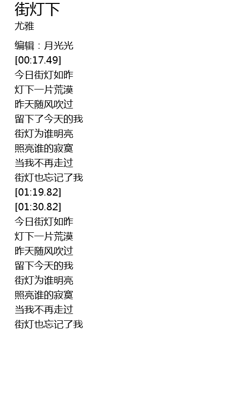 | [01:56.75] | 街灯为谁明亮 |