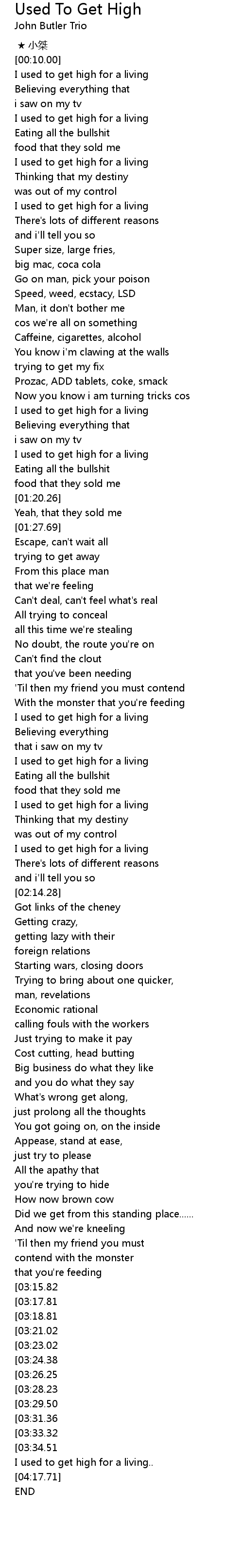 | [00:38.28] | I used to get high for a living |