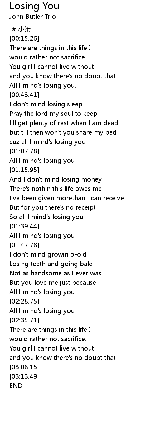 | [03:15.03][03:08.15][03:00.93] | All I mind' s losing you |
