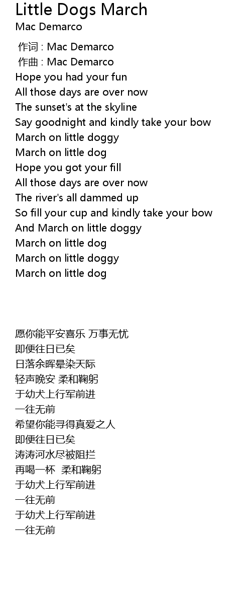 | [02:05.20] | March on little doggy |