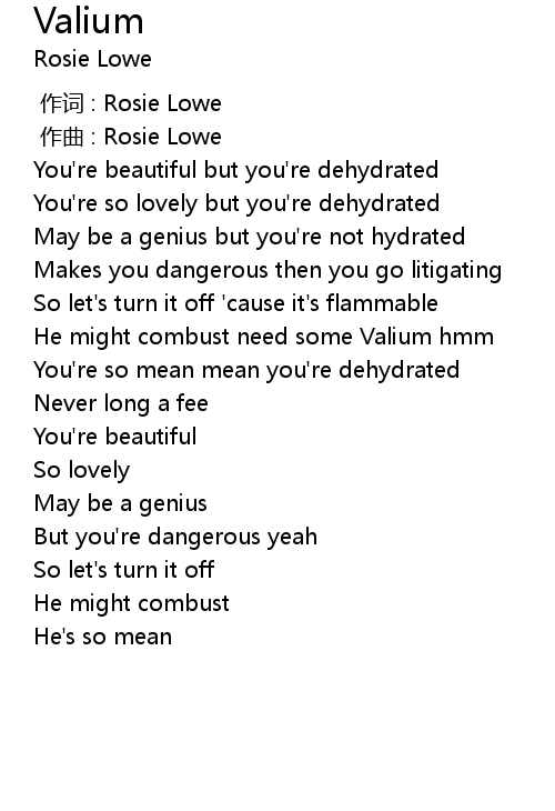 | [00:09.94] | You're so lovely but you're dehydrated |
