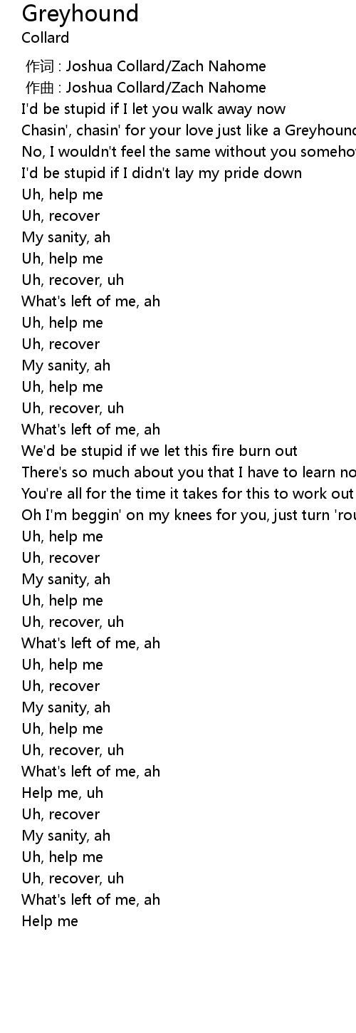 | [00:12.016] | Chasin', chasin' for your love just like a Greyhound |