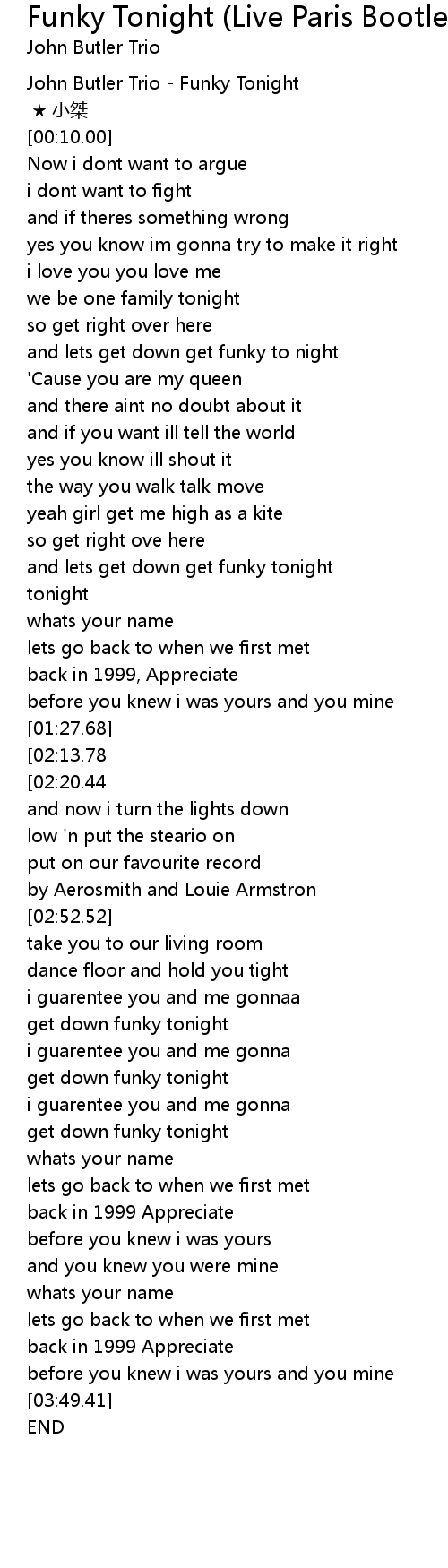 | [00:00.00] | John Butler Trio - Funky Tonight |