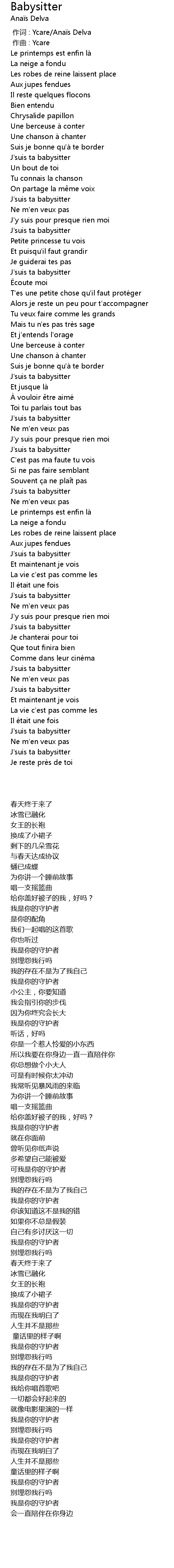 | [00:00.000] | 作词 : Ycare/Anaïs Delva |