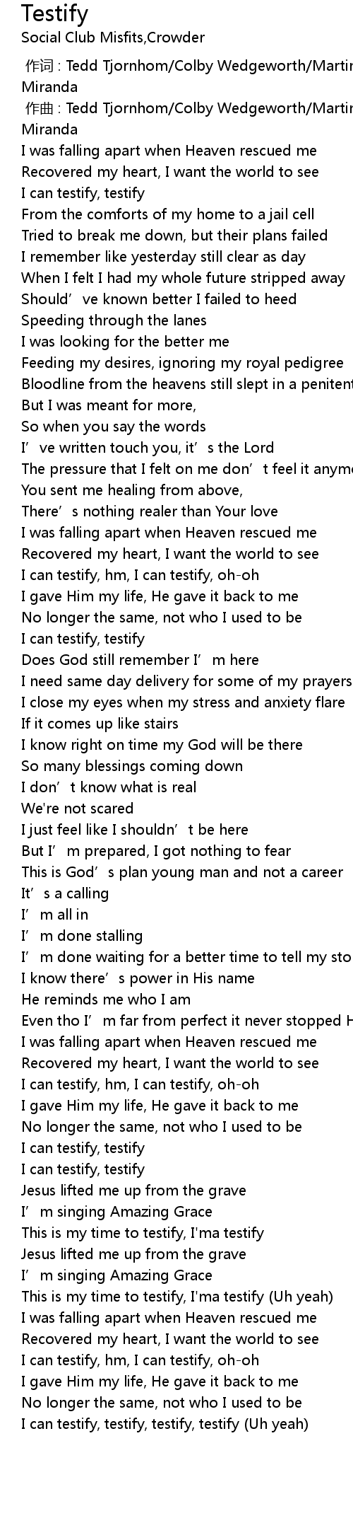 | [03:21.15] | I can testify, testify, testify, testify (Uh yeah) |