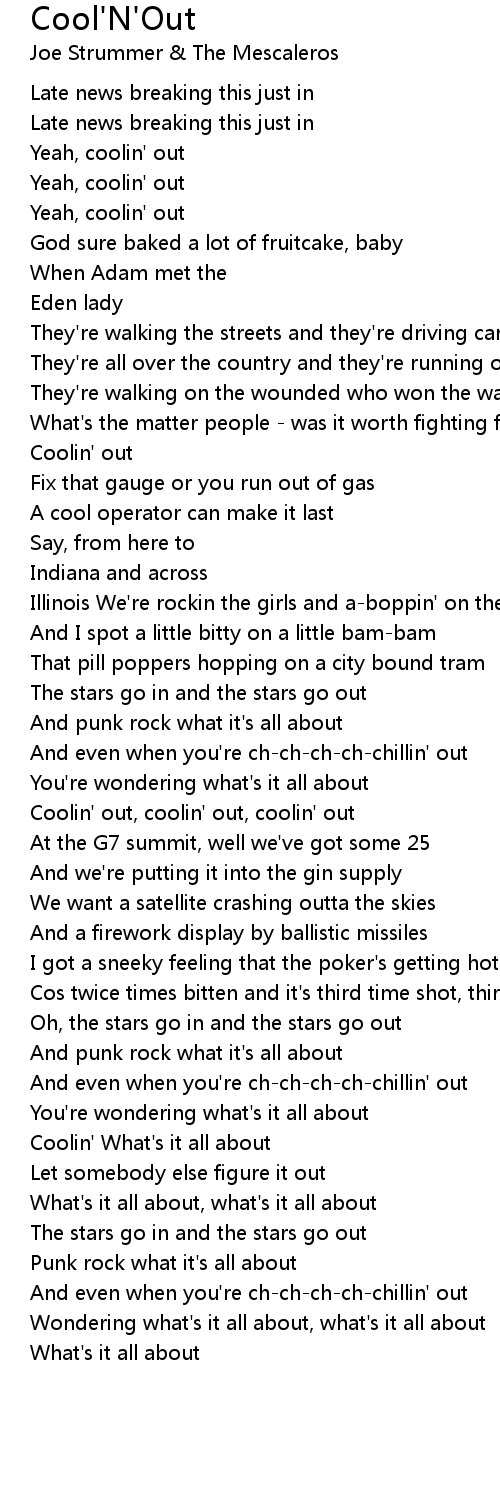 Coolin' out, coolin' out, coolin' out |