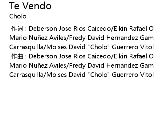 | [00:00.000] | 作曲 : Deberson Jose Rios Caicedo/Elkin Rafael Oviedo Llamas/Jose Mario Nuñez Aviles/Fredy David Hernandez Gamarra/Ronny Javier Carrasquilla/Moises David "Cholo" Guerrero Vitola |