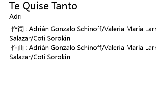 | [00:00.000] | 作词 : Adrián Gonzalo Schinoff/Valeria María Larrarte Salazar/Coti Sorokin |