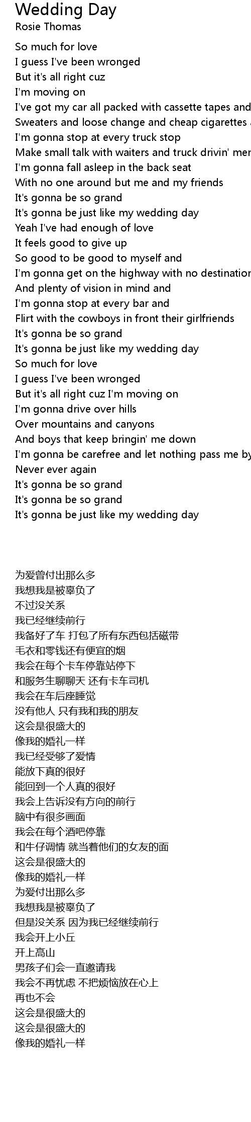 It's gonna be just like my wedding day |