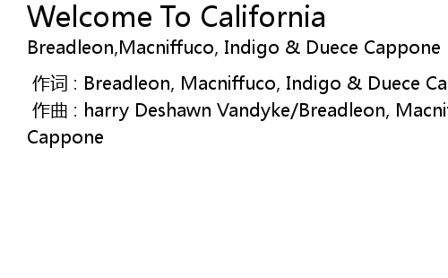 | [00:00.000] | 作词 : Breadleon, Macniffuco, Indigo & Duece Cappone |