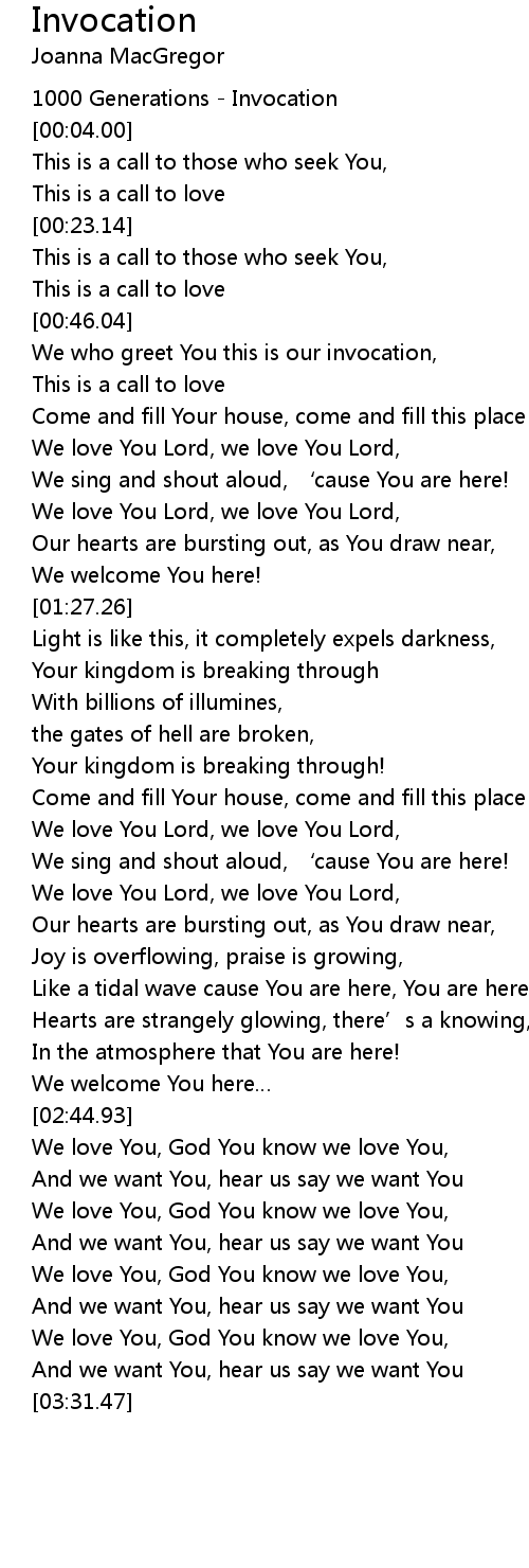 | [00:56.99] | Come and fill Your house, come and fill this place |