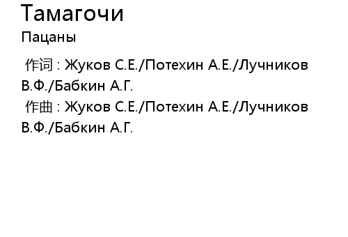 | [00:00.000] | 作词 : Жуков С.Е./Потехин А.Е./Лучников В.Ф./Бабкин А.Г. |