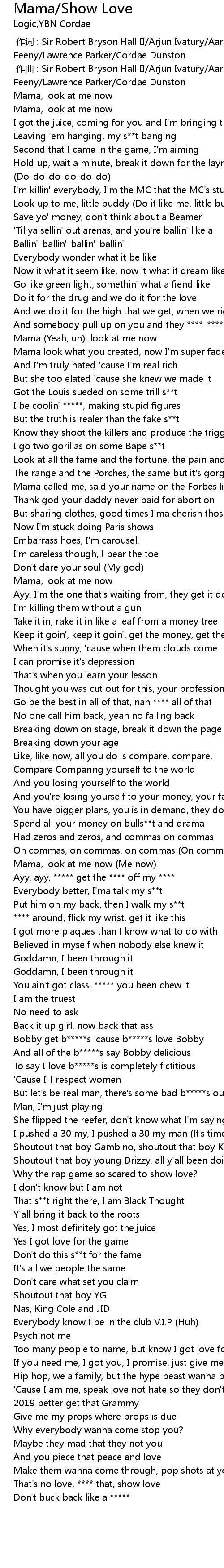 | [00:00.000] | 作词 : Sir Robert Bryson Hall II/Arjun Ivatury/Aaron Gomez/Adam Feeny/Lawrence Parker/Cordae Dunston |