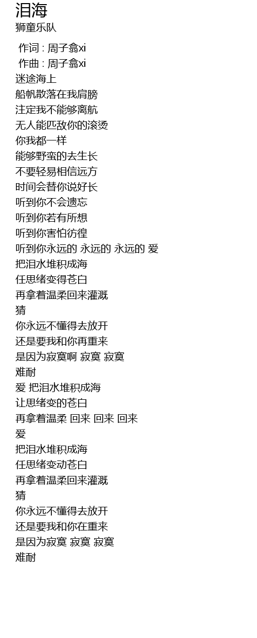 | [00:00.000] | 作词 : 周子翕xi |