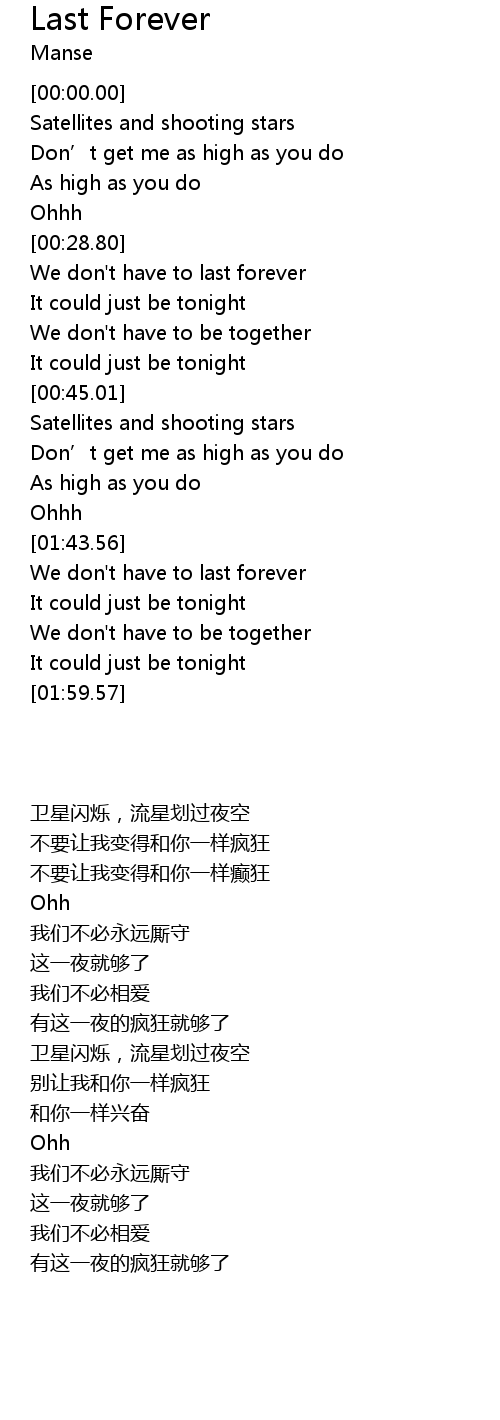 | [00:29.55] | We don' t have to last forever |