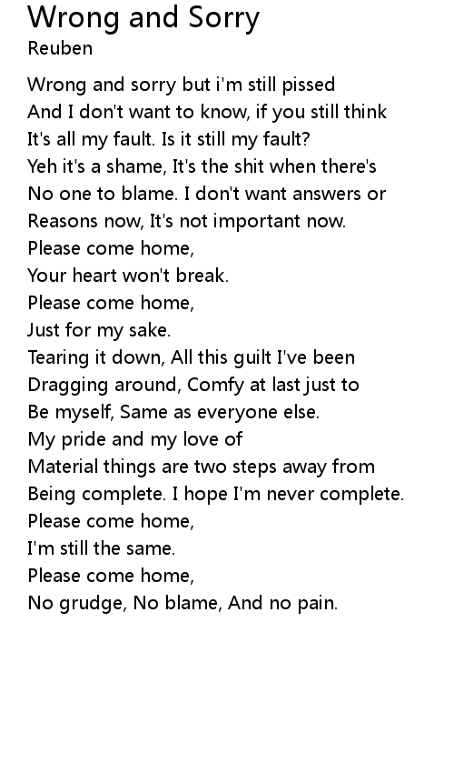 Wrong and sorry but i'm still pissed |