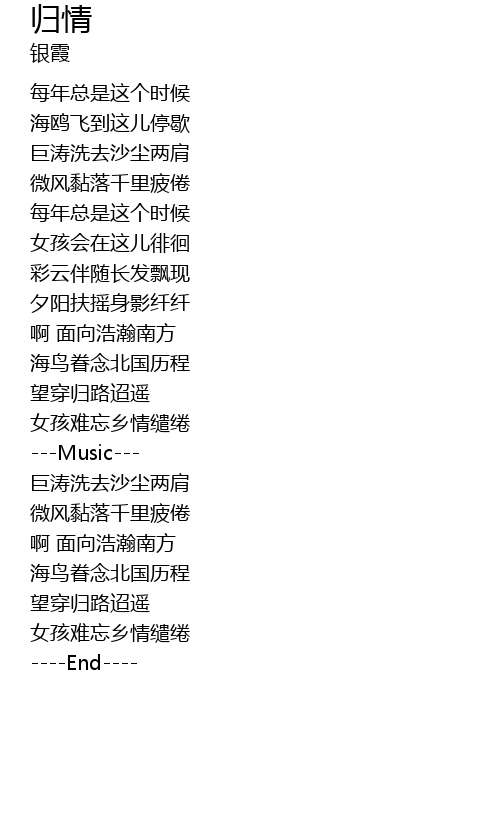 | [01:22.35] | 海鸟眷念北国历程 |