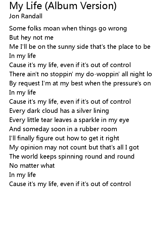Cause it's my life, even if it's out of control |