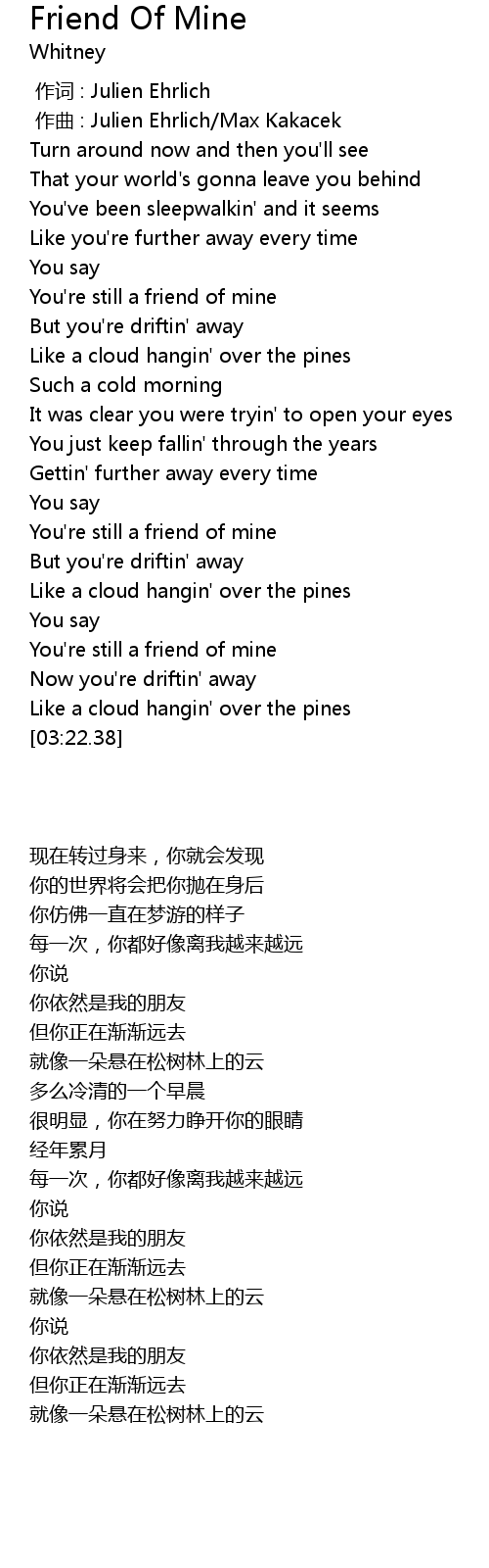 | [02:59.68] | You're still a friend of mine |