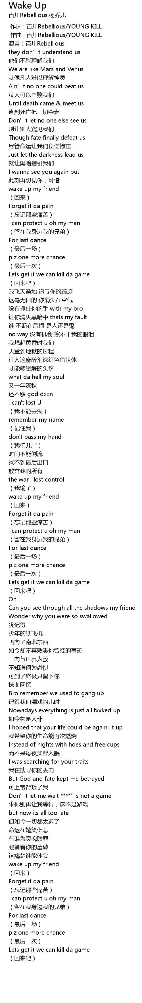 | [00:00.000] | 作词 : 百川Rebellious/YOUNG KILL |